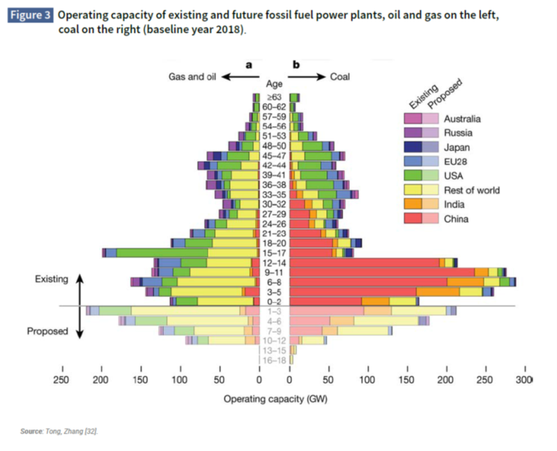 Угольная генерация показывает наивысшие баллы: минимум 753 г экв. CO / кВт ч (IGCC, США) и максимум 1095 г CO2 экв / кВтч (угольная пыль, Китай). Станции, оборудованные устройствами для улавливания углекислого газа, могут сократить выбросы до 147–469 г экв. CO2 / кВтч (соответственно).